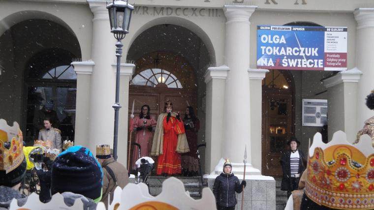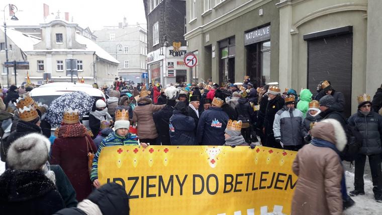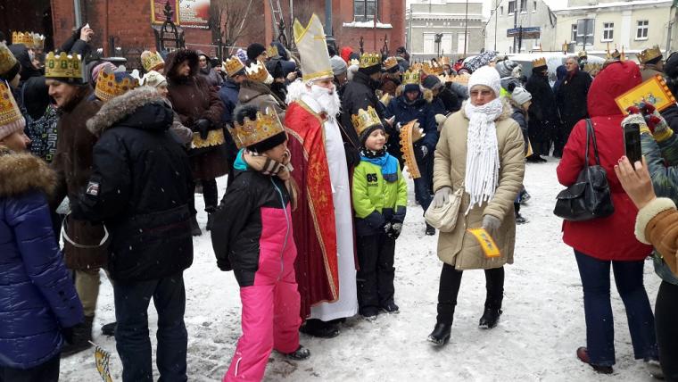 Ulicami Wałbrzycha przemaszerował dziś Orszak Trzech Króli ,organizowany jak co roku przez Fundację Orszak Trzech Króli. Współorganizatorami były władze Wałbrzycha oraz Szczawna Zdroju pod przewodnictwem Prezydenta Miasta Wałbrzycha - dr. Romana Szełemeja, wałbrzyskie parafie, a w szczególności organizacje katolickie, którym przewodniczył ks. prałat dr Krzysztof Moszumański, proboszcz parafii p.w. Niepokalanego Poczęcia NMP w Wałbrzychu. Wydarzenie rozpoczęło się o godz. 11.00 Mszą św. w parafii św. Aniołów Stróżów. Po Eucharystii przy kolegiacie uformował się orszak, który prowadzili siedzący na koniach trzej królowie: Kacper, Baltazar oraz Melchior. Orszak zatrzymał się u Heroda, który przywitał ich na wałbrzyskim Rynku. Scenka ta została odtworzona przez Prywatne Gimnazjum i Liceum Sióstr Niepokalanek w Wałbrzychu. Z Rynku trzej królowie wspólnie ze swoim orszakiem udali się do Miejskiego Ratusza, gdzie odbył się na ich cześć program wizualno-muzyczny, zorganizowany przez gimnazjum im. Korczaka w Wałbrzychu. Przemierzając ulice miasta orszak dotarł do swojego celu, tzn. do szopki Betlejemskiej. Odnalazł tam nowo narodzone dziecko z Matką Najświętszą oraz św. Józefem . Trzej królowie pokłonili się św. Rodzinie oraz wręczyli dary. Hołd, jaki złożyli Mędrcy ze Wschodu, jest znakiem, że i poganie zostali powołani do przyjęcia wiary. Część oficjalną wydarzenia zakończyły podziękowania ,złożone przez ks. prałata Krzysztofa Moszumańskiego wszystkim tym, którzy swoim zaangażowaniem przyczynili się do wspaniałej oprawy tego przedsięwzięcia. Lista była długa: począwszy od władz Wałbrzycha, Szczawna Zdroju, poprzez stadninę koni Książ, Teatr Dramatyczny im. Jerzego Szaniawskiego w Wałbrzychu, organizacji katolickich, szkół. Słowa podziękowania złożył dr Roman Szełemej, który wykorzystał tę okazję do wręczenia nagrody laureatom konkursu na najpiękniejszą szopkę Bożonarodzeniową. Około godziny 13.00 ks. prałat pobłogosławił licznie zebrane osoby. Po części oficjalnej piosenka Arki Noego "Świeć, gwiazdeczko, świeć" rozpoczęła wspólne radosne świętowanie poprzez śpiew wydarzenia przybycia trzech króli do szopki Betlejemskiej. Ulicami Wałbrzycha przemaszerował dziś Orszak Trzech Króli ,organizowany jak co roku przez Fundację Orszak Trzech Króli. Współorganizatorami były władze Wałbrzycha oraz Szczawna Zdroju pod przewodnictwem Prezydenta Miasta Wałbrzycha - dr. Romana Szełemeja, wałbrzyskie parafie, a w szczególności organizacje katolickie, którym przewodniczył ks. prałat dr Krzysztof Moszumański, proboszcz parafii p.w. Niepokalanego Poczęcia NMP w Wałbrzychu. Wydarzenie rozpoczęło się o godz. 11.00 Mszą św. w parafii św. Aniołów Stróżów. Po Eucharystii przy kolegiacie uformował się orszak, który prowadzili siedzący na koniach trzej królowie: Kacper, Baltazar oraz Melchior. Orszak zatrzymał się u Heroda, który przywitał ich na wałbrzyskim Rynku. Scenka ta została odtworzona przez Prywatne Gimnazjum i Liceum Sióstr Niepokalanek w Wałbrzychu. Z Rynku trzej królowie wspólnie ze swoim orszakiem udali się do Miejskiego Ratusza, gdzie odbył się na ich cześć program wizualno-muzyczny, zorganizowany przez gimnazjum im. Korczaka w Wałbrzychu. Przemierzając ulice miasta orszak dotarł do swojego celu, tzn. do szopki Betlejemskiej. Odnalazł tam nowo narodzone dziecko z Matką Najświętszą oraz św. Józefem . Trzej królowie pokłonili się św. Rodzinie oraz wręczyli dary. Hołd, jaki złożyli Mędrcy ze Wschodu, jest znakiem, że i poganie zostali powołani do przyjęcia wiary. Część oficjalną wydarzenia zakończyły podziękowania ,złożone przez ks. prałata Krzysztofa Moszumańskiego wszystkim tym, którzy swoim zaangażowaniem przyczynili się do wspaniałej oprawy tego przedsięwzięcia. Lista była długa: począwszy od władz Wałbrzycha, Szczawna Zdroju, poprzez stadninę koni Książ, Teatr Dramatyczny im. Jerzego Szaniawskiego w Wałbrzychu, organizacji katolickich, szkół. Słowa podziękowania złożył dr Roman Szełemej, który wykorzystał tę okazję do wręczenia nagrody laureatom konkursu na najpiękniejszą szopkę Bożonarodzeniową. Około godziny 13.00 ks. prałat pobłogosławił licznie zebrane osoby. Po części oficjalnej piosenka Arki Noego "Świeć, gwiazdeczko, świeć" rozpoczęła wspólne radosne świętowanie poprzez śpiew wydarzenia przybycia trzech króli do szopki Betlejemskiej.