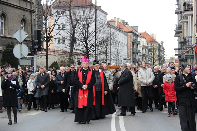 Rozważania do stacji drogi krzyżowej przygotował o. jezuita Józef Augustyn, a odczytał je Jacek Majewski. Drodze krzyżowej towarzyszył śpiew pieśni wielkopostnych i koronki do Miłosierdzia Bożego.