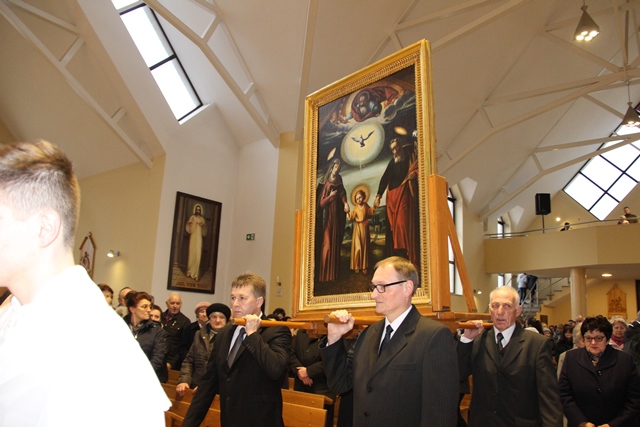 W homilii bp Stanisław Napierała przypomniał, że kopia obrazu św. Józefa Kaliskiego pobłogosławiona przez Jana Pawła II w Rzymie przemierzyła całą diecezję kaliską na początku jej istnienia. – Wszędzie św. Józef był przyjmowany po królewsku i zobaczyliśmy, że w każdej części diecezji ludzie kochają św. Józefa. Witali Go z miłością i wielką wiarą. I tak św. Józef rozpoczął scalanie naszej diecezji. Minęło już ponad 20 lat. W tym czasie powstały nowe parafie, a wśród nich Wasza parafia Matki Bożej Różańcowej, do której dzisiaj przybył św. Józef – powiedział celebrans.
