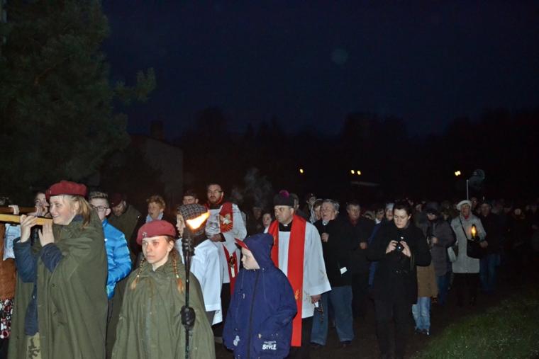 7. kwietnia, po raz dziewiąty odbyła się w niewielkiej, mikstackiej wspólnocie Droga Krzyżowa ulicami miasta. Tradycyjnie rozpoczęła się o godz. 19:00 przy kapliczce Świętego Antoniego przy ulicy Kaliskiej. To miejsce ważne dla mikstackiej wspólnoty, gdyż upamiętnia miejsce pochówku ofiar epidemii cholery. Ostatnia stacja Drogi Krzyżowej została usytuowana przy Diecezjalnym Sanktuarium Świętego Rocha wokół, którego znajduje się cmentarz, na którym wielu uczestników tego pasyjnego nabożeństwa ma groby swoich bliskich. Kolejne stacje Drogi Krzyżowej wyznaczone zostały w różnych punktach miasta. W owocnym przeżyciu Drogi Krzyżowej pomogły nam rozważania, które w tym roku przygotował ks. Wikariusz Krzysztof Lipiński. Hasło przewodnie rozważań zawrzeć można w słowach „Stacje Drogi Krzyżowej w życiu Świętych”. I tak przy poszczególnych stacjach przywoływane były postacie Świętych żyjących w różnych czasach. Łączyła ich wielka miłość do Chrystusa, wypełnianie Jego woli w życiu, miłość do bliźnich, a także doświadczenie cierpienia. Rozważanie odczytane przy pierwszej stacji przypomniało nam postać św. Jana Chrzciciela i stało się wołaniem o nawrócenie, prostowanie dróg naszego życia. Do refleksji nad tym co powinniśmy zmienić w naszym życiu zachęcały nas kolejne rozważania stacji Drogi Krzyżowej i przywoływane postaci Świętych, a wśród nich św. Jan Maria Vianney, Matka Teresa z Kalkuty, św. Maksymilian Maria Kolbe, św. Gemma Galgani, św. Ignacy Loyola, św. Karol de Foucaud, św. Maria Goretti, św. Szczepan, św. Ojciec Pio, św. Jan, św. Paweł. Rozważania stanowiły zachętę do wiernego trwania i kroczenia za Chrystusem i z Chrystusem mimo trudnych doświadczeń, do realizacji przykazań w życiu. Czas pomiędzy poszczególnymi stacjami wypełniony był śpiewem pieśni wielkopostnych oraz modlitwą, której przewodniczył ks. kan. Krzysztof Ordziniak. Przy pierwszej stacji krzyż na swe ramiona wzięli harcerze, którzy pięknie się prezentowali w swoich mundurach. Niesione przez nich zapalone pochodnie rozświetlały trasę Drogi Krzyżowej. Ustawione wzdłuż niej znicze i niesione przez uczestników tego plenerowego nabożeństwa pasyjnego stwarzały niesamowitą atmosferę i klimat do refleksji i zadumy. Między stacjami krzyż niesiony był przez przedstawicieli: dzieci, gimnazjalistów, młodzieży przygotowującej się do bierzmowania, matki, ojców, mieszkańców rejonów, przez które przebiegała trasa Drogi Krzyżowej, a także przez strażaków, którzy tradycyjnie już podjęli krzyż przy stacji XIII. Ostatnia stacja Drogi Krzyżowej znajdowała się przy Diecezjalnym Sanktuarium Świętego Rocha. Święty Roch był miłośnikiem krzyża, patronuje drewnianemu kościołowi na Wzgórzu, a od 2007 roku także miastu. Po ostatnim rozważaniu kapłani udzielili uczestnikom Drogi Krzyżowej, a potem w ciszy i zadumie wielu udało się na groby swoich bliskich, by położyć tam zapalone znicze, symbol pamięci, ale i wdzięczności za przekazaną wiarę, miłość do krzyża. Co warto podkreślić, Droga Krzyżowa ulicami miasta poprzedzała dzień wielkopostnego sakramentu pokuty i pojednania w mikstackiej wspólnocie parafialnej. Udział w Drodze Krzyżowej był więc okazją do rachunku sumienia, w czym pomocne były rozważania poszczególnych stacjach oraz do modlitwy o dobre przeżycie tego sakramentu, zwłaszcza dla tych, którzy od dawna z niego nie korzystali. W Drodze Krzyżowej ulicami miasta uczestniczyło wielu parafian. „ Idźcie i głoście”- brzmi hasło tegorocznego roku duszpasterskiego. Więc szli i głosili, że zbawienie przyszło przez krzyż, ogromna to tajemnica, tajemnica bezgranicznej Miłości Boga do człowieka… Szli i dali świadectwo swej wiary, tym, którym być może zabrakło odwagi, by wyruszyć za krzyżem. Bardzo potrzebuje tego świadectwa współczesny człowiek…potrzebuje go współczesny świat...