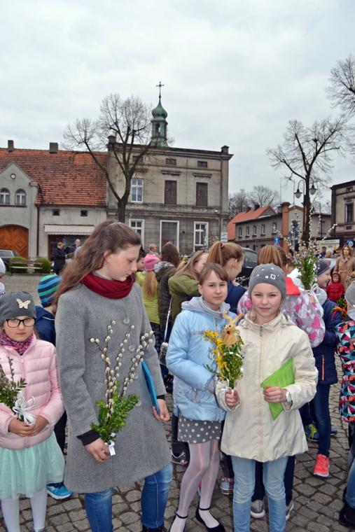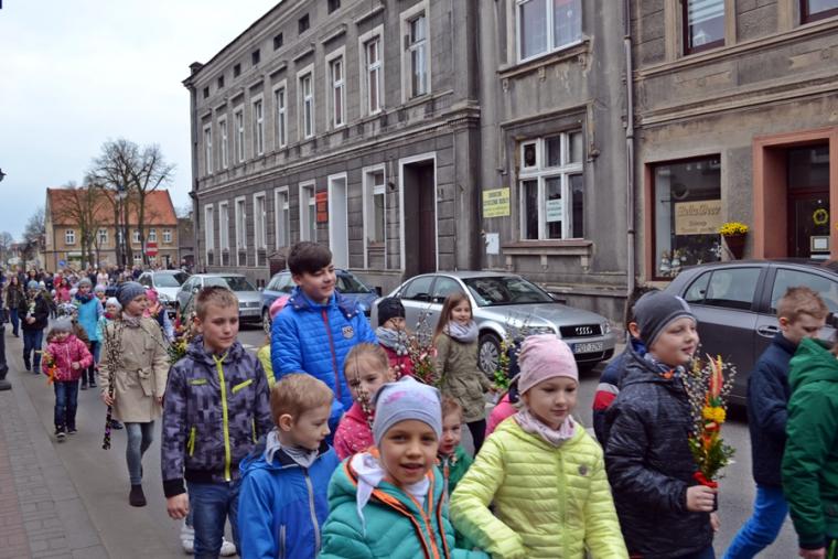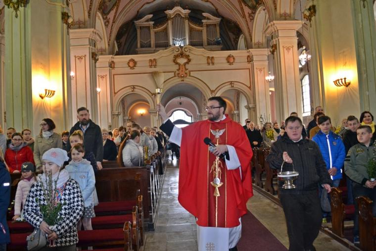 Około godz. 11:00 na mikstacki Rynek zaczęły przychodzić dzieci z palmami w rękach, ale nie brakowało także osób dorosłych. O godz. 11:00 w mikstackim wieczerniku w niedziele sprawowana jest Msza Święta ze szczególnym udziałem dzieci i młodzieży. O godzinie jedenastej w asyście ministrantów niosących krzyż na Rynek przybył ks. wikariusz Krzysztof Lipiński, który po odmówieniu specjalnej modlitwy pobłogosławił palmowe gałązki. Następnie procesjonalnie za krzyżem zgromadzeni na Rynku młodsi i starsi parafianie ze śpiewem na ustach, z palmami w rękach udali się na Mszę Świętą do kościoła farnego. Tu ks. Krzysztof pobłogosławił palmy zgromadzonych w kościele, następnie rozpoczęła się Msza Święta podczas której odczytany został opis Męki Pańskiej. Podczas Mszy Świętej śpiewał parafialny zespół młodzieżowy.