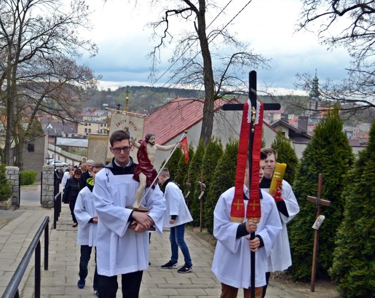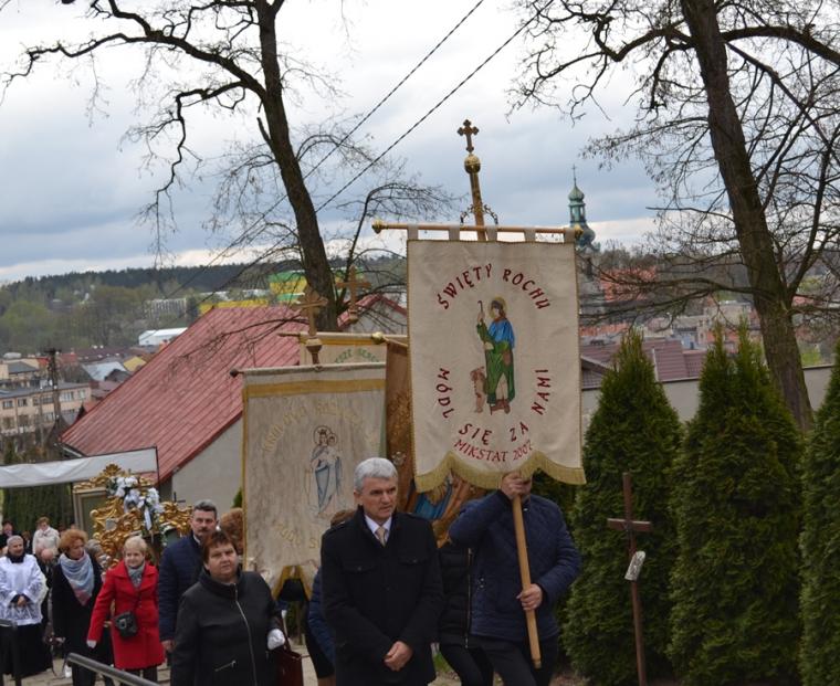 Mają Krakowianie znany chyba w całej Polsce, gromadzący tysiące wiernych odpust Emaus. Niewiele osób natomiast zapewne wie, że w niewielkiej miejscowości Mikstat( diecezja kaliska) co roku parafianie w Uroczystość Zmartwychwstania Pańskiego wyruszają w drogę do Emaus. Nie oznacza to jednak, że pielgrzymują w tym szczególnym czasie do Ziemi Świętej, chociaż zapewne wielu nosi w swym sercu pragnienie przeżycia tych dni właśnie tam. Mikstackie Emaus to procesja, która od stuleci odbywa się w tej miejscowości i prowadzi z kościoła farnego do Diecezjalnego Sanktuarium Świętego Rocha na wzgórzu za miastem. Jest znacznie krótsza niż ta, w którą wyruszyli uczniowie Jezusa z Jerozolimy do Emaus. Oni mieli do przebycia około 12 km, my około 1km. Jest jednak dla mikstackiej wspólnoty bardzo ważna, bo z jednej strony stanowi okazję do dania świadectwa wiary w zmartwychwstanie Jezusa Chrystusa, jest kontynuacją tradycji przodków, ale także czasem refleksji nad sensem życia nad tym, dokąd zmierzamy. Tradycyjnie, mikstaccy parafianie zebrali się w kościele farnym, by wyruszyć w procesji do Emaus. Ponieważ parafianie przygotowują się do Święta Miłosierdzia Bożego poprzez udział w nowennie, odmówiona została Koronka do Miłosierdzia Bożego. Następnie z paschałem, figurą Chrystusa zmartwychwstałego, z chorągwiami i feretronami wyruszyliśmy w kierunki Sanktuarium. W procesji obok kapłanów posługujących w naszej parafii ks. kan. Krzysztofem Ordziniakiem, ks. Krzysztofem Lipińskim uczestniczyli także ks. Ryszard Zieliński i ks. Mateusz Puchała. W rytm dźwięków w wykonaniu naszej parafialnej orkiestry pokonywaliśmy naszą drogę. Sanktuarium położone jest w centralnym punkcie cmentarza. Tu wielu uczestników procesji ma groby swoich bliskich. Dla nich przesłanie: Pan zmartwychwstał! nabiera tu szczególnego znaczenia. Daje nadzieję na spotkanie z tymi, którzy poprzedzili nas w pielgrzymce do Ojczyzny niebieskiej. W Uroczystość Zmartwychwstania Pańskiego orkiestra obchodzi rocznicę powstania. Warto dodać, że już 47. Stało się tradycją, że po dotarciu przed Sanktuarium uczestnicy mikstackiej procesji do Emaus zatrzymują się przy grobie założyciela orkiestry ks. kan. Bernarda Langkaua oraz jego następcy ks. kan. Kazimierza Mądrego na chwilę modlitwy. Modlitwie przy grobach kapłanów przewodniczył ks. kan. Krzysztof Ordziniak. Członkowie orkiestry złożyli w tym czasie znicze. Następnie w Sanktuarium odprawione zostały uroczyste nieszpory podczas których odczytana została Ewangelia mówiąca o uczniach zmierzających do Emaus. Słowa rozważania skierował do zebranych ks. Krzysztof Lipiński. Myślą przewodnią rozważania były słowa skierowane przez uczniów do Jezusa „ Ty jesteś chyba jedynym, który nie wie co w tych dniach wydarzyła się w Jeruzalem”. Kaznodzieje podkreślił, że opuszczenie Jezusa przez wszystkich. Jak podkreślił tak wielu było świadków czynionych przez niego znaków, cudów, a mimo to w nie zrobili niczego, gdy Jezus był krzyżowany. Ks. Krzysztof zaakcentował, że mimo tego Jezus nie odwrócił się ze swoją miłością od człowieka. Podkreślił, że także nam często wydaje się, że wiemy najlepiej jak powinno wyglądać nasze życie. To czego, jak wskazał kaznodzieja, najbardziej w życiu potrzebujemy to obecności Pana Jezusa. Tylko Jezus jest tym, który potrafi dać odpowiedź na wszystkie nasze pytania, a tych pytań jest w naszym życiu bardzo wiele kontynuował kaznodzieja. Postawą swego życia mówimy wielokrotnie „ Panie Boże, Ty się na tym nie znasz bo jak byś się znał, to by było inaczej” stwierdził ks. Krzysztof. Zaapelował do zebranych, by nie próbowali nigdy sami udzielać sobie odpowiedzi, wyjaśniać trudnych, niezrozumiałych spraw sami. Podkreślił, że Jezus jest obok nas, jest w nas, ale my możemy go nie dostrzeć. Kaznodzieja zachęcał do słuchania Boga. Wskazał, że uczniowie byli przy Jezusie, widzieli znaki, cuda, słuchali Jego słów, ale dopiero spotkanie ze Zmartwychwstałym Chrystusem sprawia, że ich wiara staje się wiarą żywą. Kaznodzieja zachęcając do refleksji, dlaczego Święta Zmartwychwstania są tak ważne powiedział: „ Te święta są okazją do tego, aby jeśli ktoś doświadczył tego, że Jezus jest naprawdę Bogiem żywym, to żeby swoją wiarę umocnił, jeszcze bardziej ją ożywił. A jeśli czasami w naszym życiu wiara jest ospała, przygaszona to jest to okazja do tego, żeby się ożywiła, a wraz z tą żywą wiarą zobaczymy, że Pan Bóg ukazuje nam odpowiedzi na wszystkie pytania naszego życia” .Ważne jest jednak podkreślił kaznodzieja byśmy chcieli tych odpowiedzi słuchać. Kończąc rozważanie ks. wikariusz wskazał: „ Jezus pokazał swym uczniom, że On dokładnie wiedział, co się tam w Jerozolimie wydarzyło, bo to on był właśnie w centrum tego wydarzenia. Pan przygotował dla nas stół, wielu skorzystało z tego zaproszenia. Mikstacka droga do Emaus A. D. 2017 była kolejną okazją do realizacji hasła roku duszpasterskiego „ Idźcie i głoście”. Szli i głosili napotykanym ludziom mikstaccy parafianie: Jezus żyje, zmartwychwstał, prawdziwie zmartwychwstał!