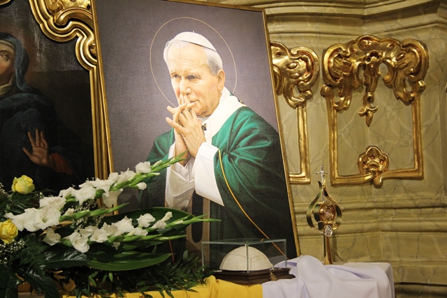 Witając relikwie św. Jana Pawła II ks. prał. Adam Modliński przypomniał, że papież 4 czerwca 1997 r. po odprawieniu Mszy św. przybył do katedry, gdzie modlił się przed Najświętszym Sakramentem. – Św. Janie Pawle II z wielką radością i entuzjazmem witaliśmy Ciebie w naszym mieście i w naszej młodej diecezji. Sprawowałeś Najświętszą Eucharystię, a podczas homilii ukazując nam św. Józefa – wielkiego obrońcę i troskliwego opiekuna Jezusa, przypomniałeś nam, jak wielką wartością jest rodzina oparta na fundamencie sakramentalnego małżeństwa mężczyzny i kobiety oraz jak wielką wartością i świętością jest życie każdego człowieka od poczęcia do naturalnej śmierci – mówił proboszcz kaliskiej katedry.