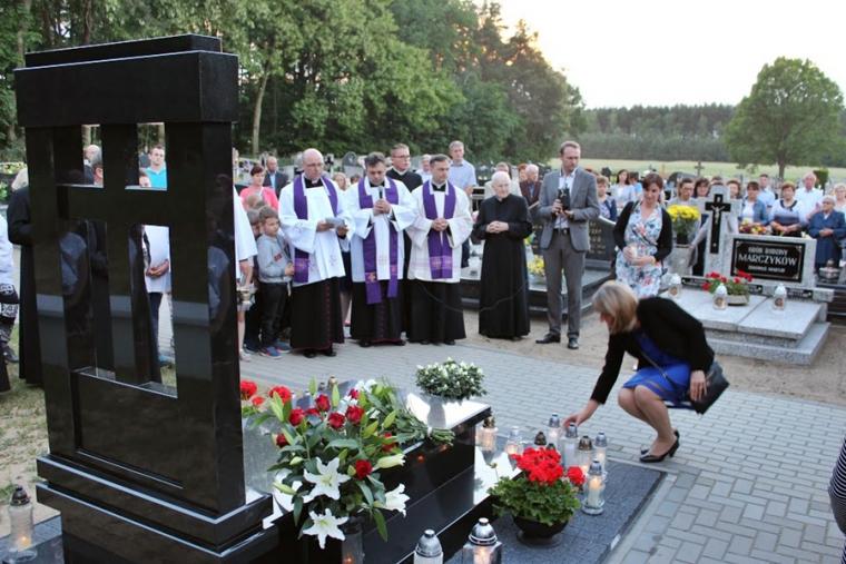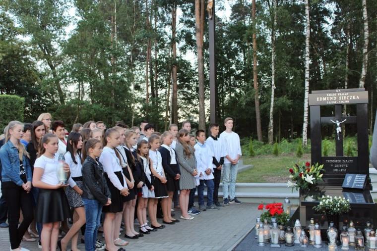Na drugą część uroczystości upamiętniającej rocznice śmierci Kapłana Edmunda, ks. kanonik Przemysław Talaga sprawujący obecnie posługę proboszcza w parafii w Chynowej zaprosił wszystkich obecnych na cmentarz, gdzie poświęcono nagrobek Śp. Ks. Prałata Edmunda Sieczki. Został on ufundowany wspólnie przez rodzinę Ś.p. Kapłana i wspólnotę parafialną.