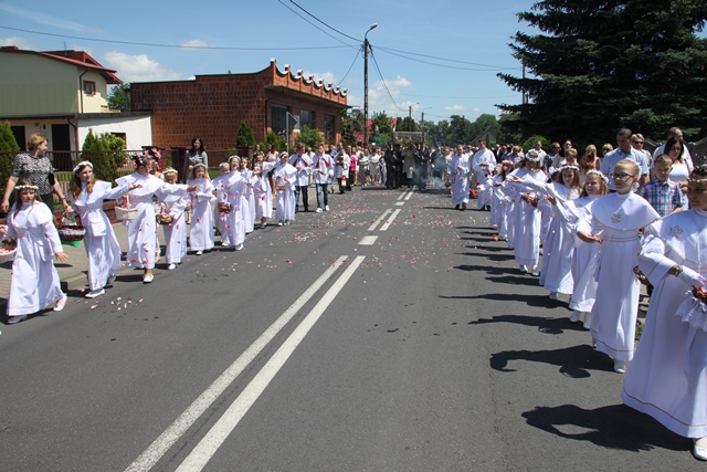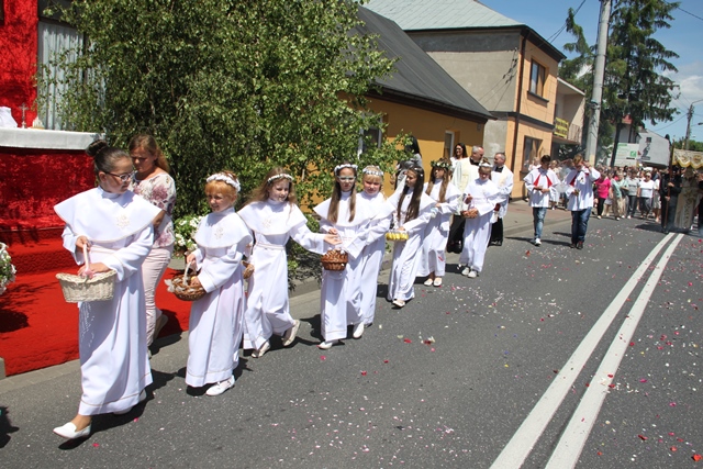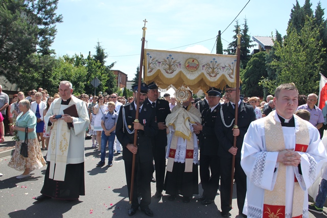 Po Mszy św. wyruszyła procesja do czterech ołtarzy, którą prowadził bp Stanisław Napierała. Przy czwartym ołtarzu na placu Wolności biskup udzielił błogosławieństwa Najświętszym Sakramentem na cztery strony świata.