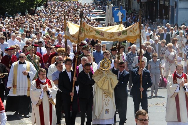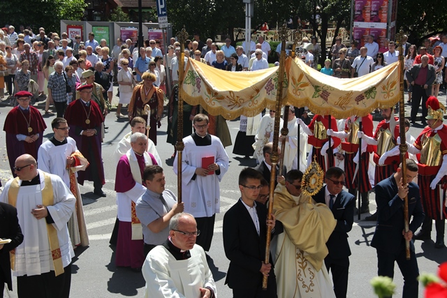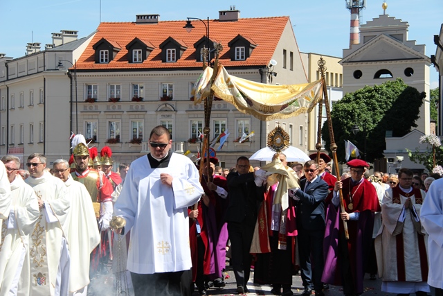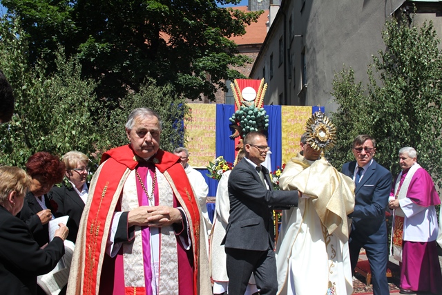 Zachęcał wiernych, aby zaprosili Jezusa do swojego życia. – Dziękujmy Panu Bogu, że możemy uczestniczyć w tej pięknej uroczystości Bożego Ciała i zaprośmy Go do swojego serca, do swoich rodzin, niech nam błogosławi w dalszym pielgrzymowaniu – powiedział bp Janiak.