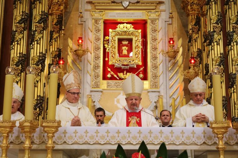 Zdaniem ks. kardynała Maryja rzadko wypowiadała się na kartach Ewangelii, jednak Jej postawa, miłość i służba, mówiły znacznie więcej, aniżeli słowa. Wyjątek stanowi hymn „Magnificat”, w którym do głosu doszło Jej serce: „W naszym dzisiejszym zbiorowym Magnificat dziękujemy Maryi za to, że została Królową naszego narodu i że nasza polska ziemia została pokryta siecią Jej sanktuariów, do których zdąża wierny lud powierzając Najlepszej Matce swoje bóle, utrapienia, pragnienia i nadzieje. Tu, w Licheniu, dziękujemy Jej, że wybrała sobie tę piękną krainę, by spotkać się ze swymi dziećmi, by wsłuchiwać się uważnie w ich prośby, by umacniać ich swoją macierzyńską miłością” – mówił kardynał.W odniesieniu do licheńskiego wizerunku Matki Bożej kard. Dziwisz zwrócił uwagę na dwa szczegóły: symbole męki Chrystusa znajdujące się na obrzeżach Jej szaty oraz białego orła w koronie znajdującego się na piersi Maryi.