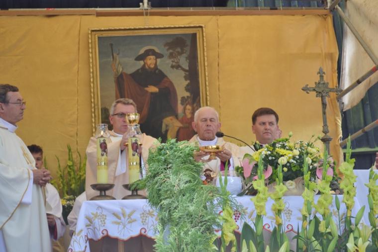 Uroczystej sumie odpustowej sprawowanej o godz. 11:00 przewodniczył ks. bp Senior Stanisław Napierała. Wcześniej bp Senior dokonał obrzędu błogosławieństwa zwierząt, który stanowi nierozłączny element uroczystości odpustowych ku czci św. Rocha w Mikstacie. Na początku Eucharystii ks. kan. Krzysztof Ordziniak, kustosz Diecezjalnego Sanktuarium Świętego Rocha w Mikstacie skierował słowa podziękowania za przybycie na uroczystości odpustowe do ks. Biskupa Stanisława Napierały. Wyraził radość z obecności ks. biskupa wśród nas. Ks. kustosz przywitał kapłanów, przedstawicieli władz, pielgrzymów, parafian. Poprosił następnie ks. Bpa, by sprawował tę sumę w intencji wszystkich pielgrzymujących na uroczystości odpustowe.