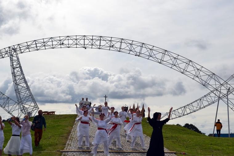 Z Gniezna pojechaliśmy na Pola Lednickie, gdzie odbywało się spotkanie seniorów. W tym roku jego hasłem przewodnim były słowa „ Idź i kochaj”. Spotkanie na Lednicy rozpoczęło się gimnastyką. Punktualnie o godz. 12:00 włączyliśmy się w modlitwę Anioł Pański.