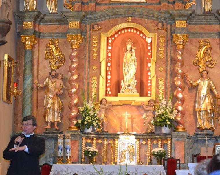 Cisza zapanowała na Lednickich Polach, gdy nadszedł czas adoracji Jezusa ukrytego w Najświętszym Sakramencie. Przed wystawionym Najświętszym Sakramentem został odczytany uroczysty Akt odnowienia Wyboru Chrystusa. Warto tu przytoczyć jego słowa: „Panie Jezu Chryste Ciebie wybieram jako mojego Pana i za Apostołem Piotrem powtarzam Ty jesteś Chrystus Syn Boga Zbawiciel. Tobie oddaję swoją przeszłość, dzień dzisiejszy i przyszłość oraz całą moją wieczność. Ty jesteś moją prawdą. Ty jesteś moją drogą, moim życiem i moją miłością teraz i na wieczność”. Wraz z pielgrzymami, którzy tak jak my przybyli na to niezwykłe modlitewne spotkanie przeszliśmy przez Bramę III Tysiąclecia. Zachwyciła nas oprawa muzyczna, przygotowane spektakle i atmosfera wzajemnej życzliwości. Uroczystości na Lednicy zakończyły się tuż po godzinie 18:00. Piękny i przepełniony radością był ten czas spotkania z Jezusem i bliźnimi na Lednickich Polach. Udział w spotkaniu nie był ostatnim etapem naszego pielgrzymowania w tym dniu. Z Lednicy udaliśmy się do Sanktuarium Matki Bożej Tuleckiej. W drodze do sanktuarium ks. proboszcz przybliżył nam histori jego powstania. Tulecka wspólnota parafialna przygotowywała się do uroczystości odpustowych. W świątyni trwał Koncert Wielbienia. W sanktuarium przywitał nas ks. Marian Libera, kustosz tego miejsca. Był czas na chwilę indywidualnej modlitwy – rozmowy z Matką Bożą, a potem trzeba było wyruszyć dalszą drogę. Do Mikstatu wróciliśmy około 23:00. Dobrze nam było na tym pielgrzymim szlaku. Uczestnicząc w Lednicy Seniora mogliśmy się przekonać, że Kościół jest wspólnotą, w której jest miejsce dla każdego człowieka.