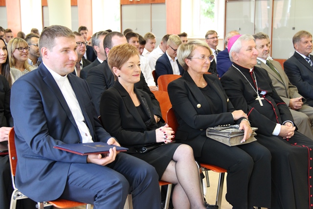 W homilii ks. dr Waldemar Graczyk wskazywał, że szkoła ma być miejscem nie tylko nauki czy zdobywania wiedzy, ale również miejscem wychowania młodego człowieka.Podkreślał, że nauczyciele są powołani do tego, aby ukazywać młodemu człowiekowi radość życia w prawdziwej wolności. - Jesteśmy posłani do tych naszych wychowanków, aby nieść przesłanie o prawdziwym życiu, o życiu w wolności dzieci Bożych – mówił kaznodzieja.Zachęcał uczniów, aby kształcili się intelektualnie i duchowo. - Przybyliście do tej szkoły nie tylko po to, aby zdobywać wiedzę i zawód, ale także uczyć się jak pięknie żyć. Mamy nadzieję, że nie odrzucicie Bożej propozycji, by wzrastać w swoim człowieczeństwie, a więc być po prostu dobrym człowiekiem, dobrym obywatelem, wspaniałym synem, wspaniałą córką, znakomitym informatykiem, mechatronikiem czy specjalistą technologii drewna, a nawet świętym – zaznaczył dyrektor internatu.Dodał, że szkoła będzie działać pod patronatem św. Józefa. - Rozpoczynając działalność Zespołu Szkół Technicznych Diecezji Kaliskiej pragniemy mocno uchwycić się św. Józefa i prosić by otoczył dyrekcję szkoły, nauczycieli, wychowawców, pracowników i uczniów swoją przemożną opieką i wstawiennictwem. Niech św. Józef będzie wzorem ojcowskiej opieki, którą pragniemy roztoczyć nad uczniami i wychowankami tej szkoły. Dla uczniów niech będzie przykładem życia w bliskości Jezusa i Maryi – powiedział ks. Graczyk.