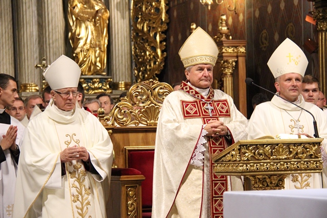 We Mszy św. uczestniczyli także: biskup pomocniczy diecezji kaliskiej Łukasz Buzun, wikariusz generalny ks. prał. Andrzej Latoń, emerytowany proboszcz parafii św. Antoniego w Ostrowie Wielkopolskim ks. inf. Tadeusz Szmyt, wikariusze biskupi, kapłani pracujący w urzędach centralnych diecezji kaliskiej, kapłani Kapituły Katedralnej, Kolegiackiej i Konkatedralnej, wspólnota Wyższego Seminarium Duchownego, siostry zakonne, przedstawiciele władz samorządowych Kalisza i Wrocławia, delegacje organizacji kościelnych i świeckich, wierni diecezji kaliskiej.