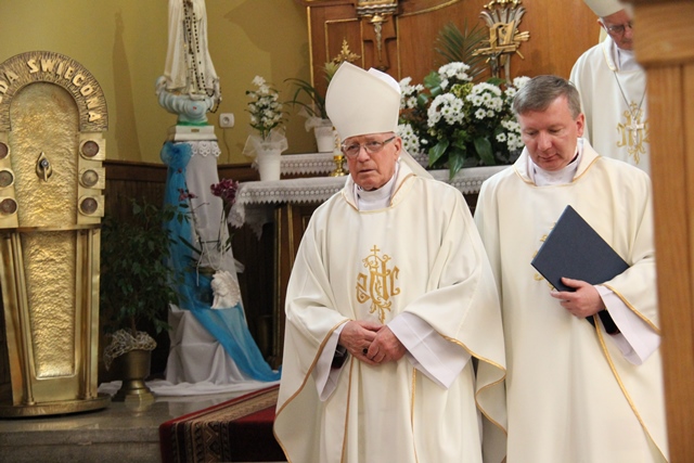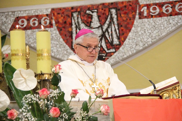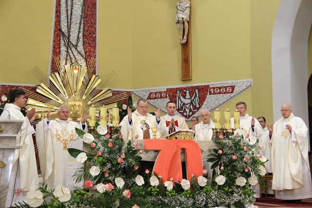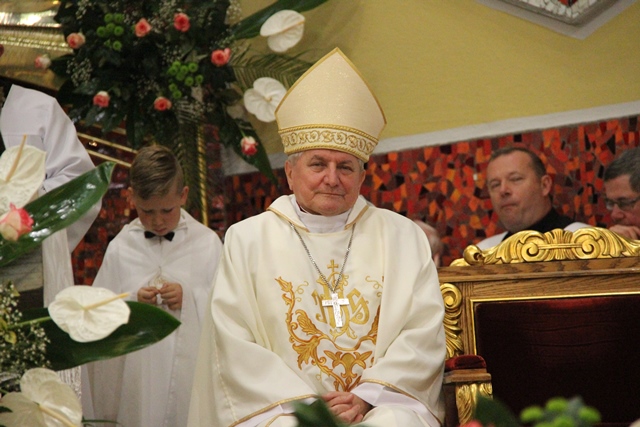 Zaznaczył, że jubileusz poświęcenia tej świątyni jest okazją do dziękczynienia Bogu. – Dziękujmy Bogu, że zechciał zamieszkać wśród nas, że mieszka w Najświętszym Sakramencie, że jest obecny w naszym życiu osobistym, rodzinnym, społecznym i narodowym – podkreślał kaznodzieja.