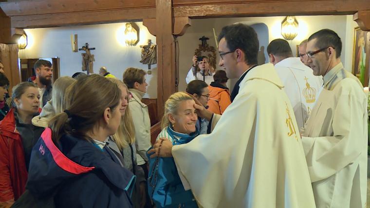 Podczas Mszy św. poświęcone zostały różańce, które każdy uczestnik otrzymał przy indywidualnym błogosławieństwie.