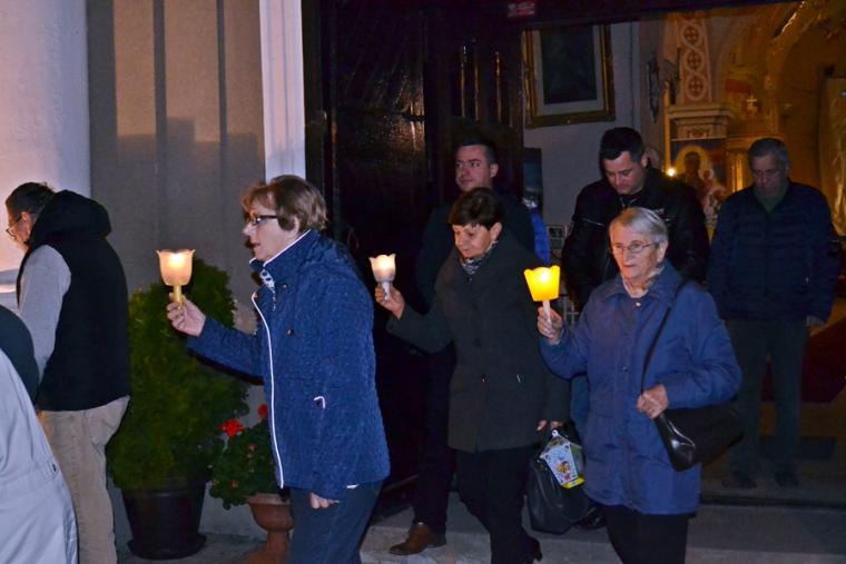Po zakończeniu modlitwy różańcowej za krzyżem i figurą Matki Boże Fatimskiej ze śpiewem na ustach, z płonącymi lampionami wyruszyliśmy w procesji wokół kościoła. Po powrocie procesji do kościoła w łączności duchowej z Jasną Górą zaśpiewaliśmy Apel Jasnogórski. Ku niebu popłynęły słowa: Maryjo: jestem, pamiętam, czuwam.
