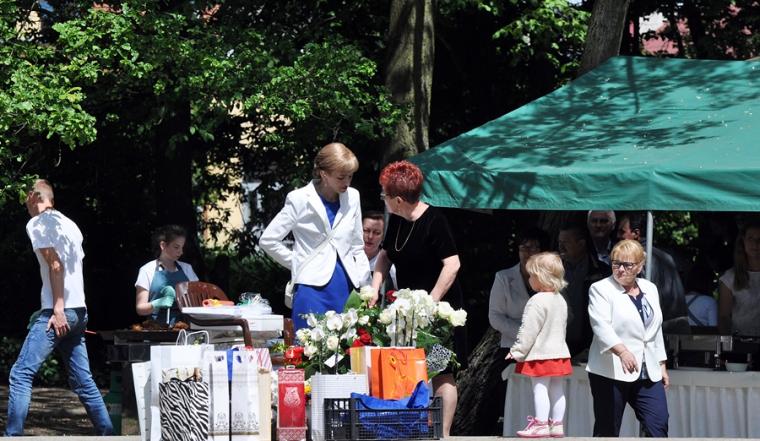 Po mszy świętej jej uczestnicy wraz z Jubilatem przy dźwiękach orkiestry z Chełmc przeszli do parku. Tu wielu gości złożyło ks. kan. Krzysztofowi życzenia. Wiele życzliwych słów padło pod adresem ks. Jubilata. Składający życzenia zostali obdarowani przez ks. kan. Krzysztofa albumem z homiliami i przemówieniami Ojca świętego Jana Pawła II z pierwszej pielgrzymki do Polski, pamiątkowym obrazkiem i płytą z filmem „Czekając na motyle”. Potem przyszedł czas na konsumpcję przepysznych potraw, rozmowy i wspomnienia. Podczas biesiadowania przygrywała wspomniana już orkiestra z Chełmc i zespół muzyczny. Ks. Jubilat nie zapomniał o swoich najmłodszych gościach. Dzieci chętnie korzystały ze zjeżdżalni i dmuchanego placu zabaw. Wielu gości spędziło czas na rozmowach spacerując parkowymi alejkami.