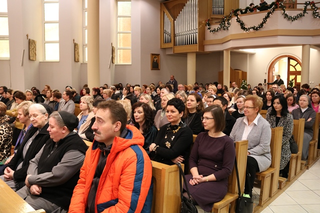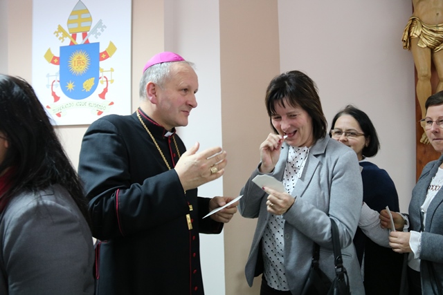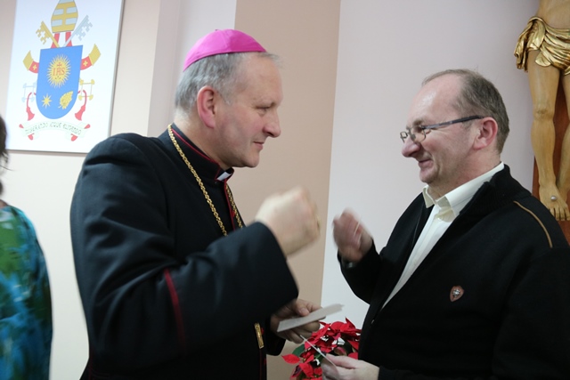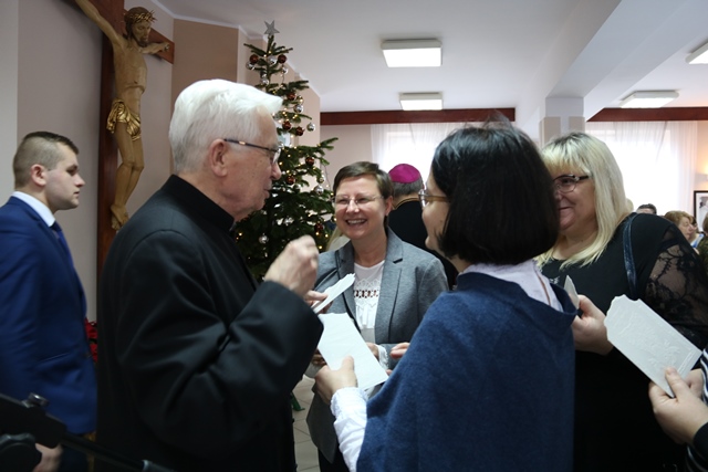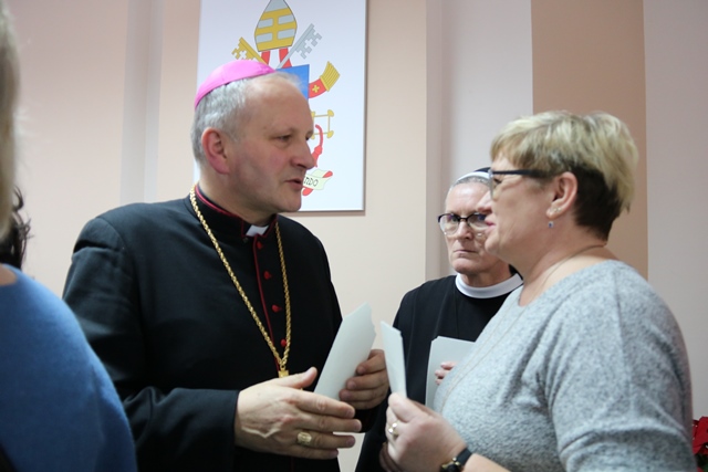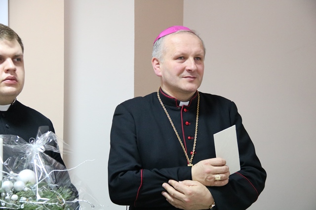 Druga część spotkania obyła się w refektarzu, gdzie bp Łukasz Buzun złożył katechetom życzenia i przełamał się opłatkiem. W spotkaniu wzięło udział ok. 300 katechetów.