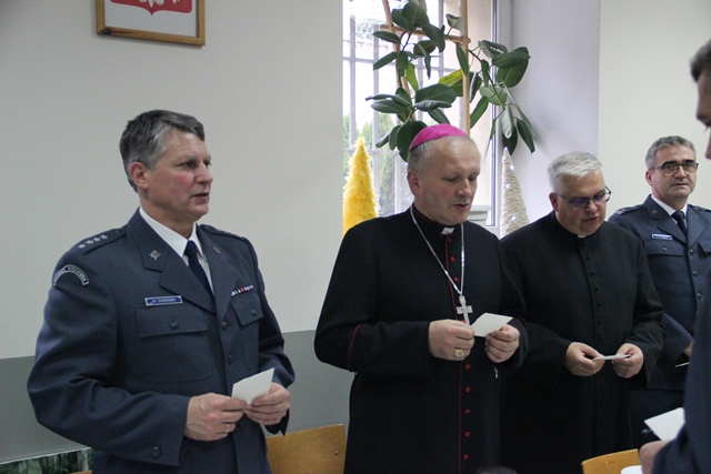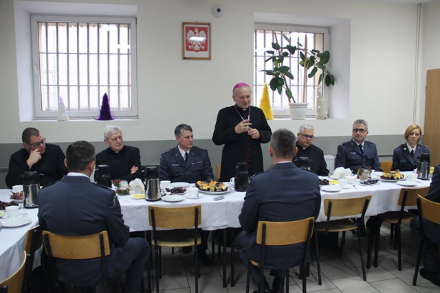Biskup i kapłani przełamali się opłatkiem z funkcjonariuszami, siostrami zakonnymi i aresztantami.