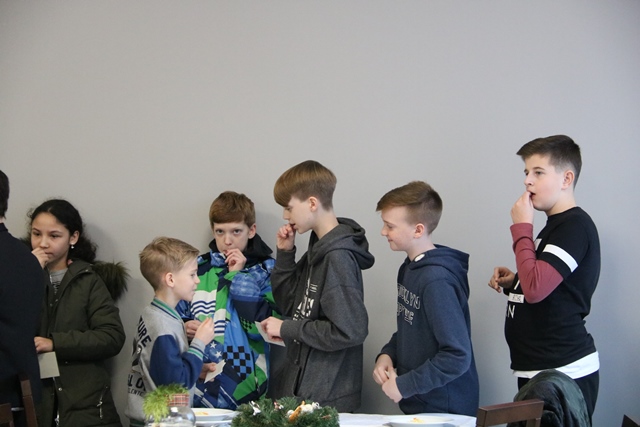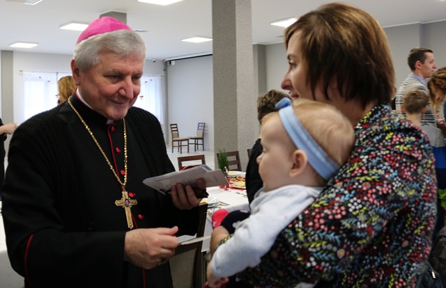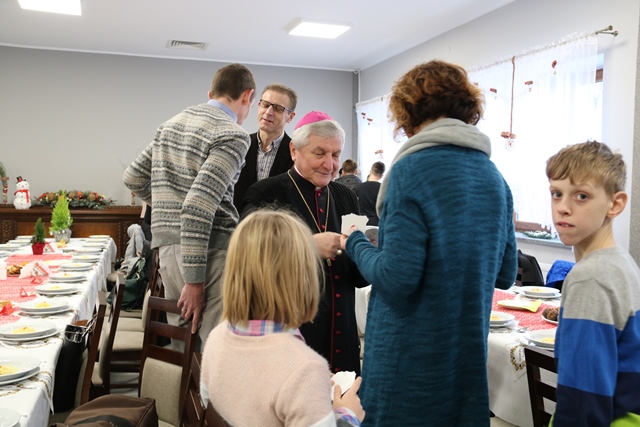 Po Mszy św. biskup kaliski Edward Janiak przełamał się opłatkiem z rodzinami i zasiadł do wspólnej wieczerzy.