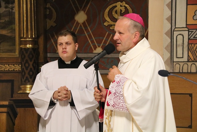 Witając biskupa kaliskiego ks. prał. Adam Modliński podkreślił, że szósty rok posługi pasterskiej w diecezji kaliskiej wpisuje się w Nadzwyczajny Rok Świętego Józefa Kaliskiego. – Ekscelencjo dziękujemy Ci za to, że swoim nauczaniem i przykładem życia przypominasz nam o Bogu, który jest miłością i kocha każdego człowieka, również słabego. Księże Biskupie to Twoim pragnieniem było, aby Ojciec Święty Franciszek ten rok ogłosił błogosławionym czasem łaski, w którym doświadczamy bliskości oraz szczególnego wstawiennictwa i opieki św. Józefa - mówił proboszcz katedry św. Mikołaja w Kaliszu.