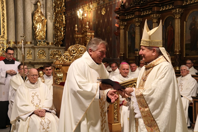 Zacytował fragment homilii wygłoszonej przez biskupa kaliskiego Edwarda Janiaka w dniu ingresu, w którym wyrażał gotowość do służby w diecezji licząc na orędownictwo i wsparcie św. Józefa. – Dziś po 6 latach służby w Kościele kaliskim dziękujemy za ojcowskie ciepło, za pogodne usposobienie, za cierpliwość i wyrozumiałość, za „Oportet servire” – podkreślał wikariusz biskupi ds. duchowieństwa.