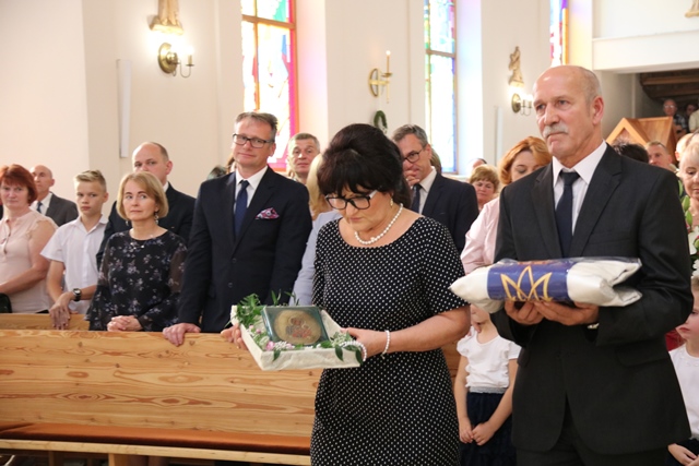 Przed zakończeniem Mszy św. głos zabrała minister Beata Kempa, która z okazji 100. rocznicy odzyskania przez Polskę niepodległości ofiarowała Matce Bożej Częstochowskiej czczonej w sycowskiej parafii flagę narodową i orła.