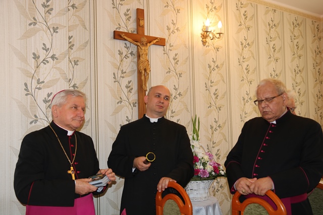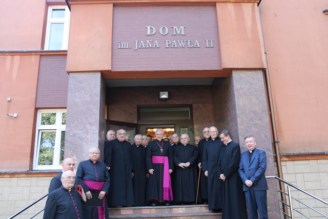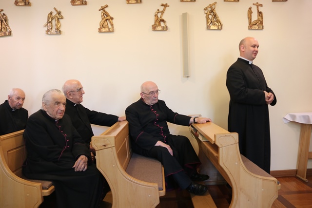 Spotkanie było okazją do powitania nowego dyrektora Domu Księży Seniorów, którym został ks. Michał Będzieszak. – Ksiądz wszędzie, gdzie pracował okazywał wielkie serce dla starszych kapłanów. Życzę księdzu, żeby tutaj dobrze czuł się, nie żałował czasu dla spracowanych kapłanów. Bądź dobry jak chleb, jak brat Albert, żeby każdy mógł sięgnąć po twój czas – powiedział bp Edward Janiak. Dziękował ks. kan. Jackowi Andrzejczakowi i wykonawcom za to, że ten dom powstał w krótkim czasie oraz ks. prał. Witoldowi Szali za ufundowanie figury św. Józefa.