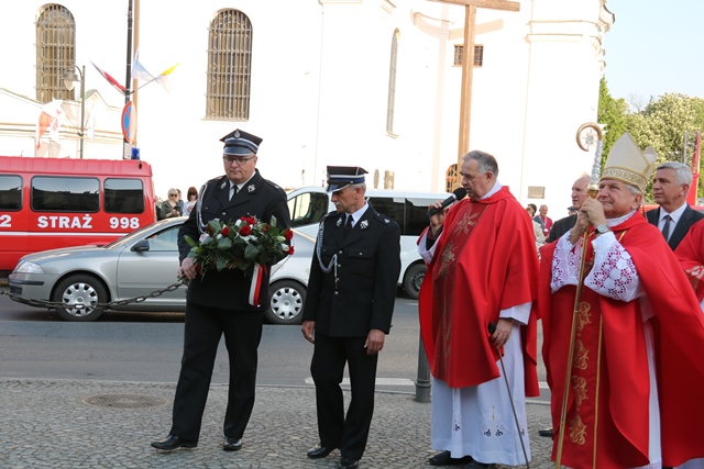 W homilii biskup kaliski wskazywał na św. Floriana, patrona strażaków, którego warto wzywać do pomocy w walce z żywiołami. – Modlimy się do św. Floriana, bo on jest przykładem człowieka charakteru. Nie zaparł się Boga w najtrudniejszych warunkach. Tylko człowiek z charakterem potrafi służyć. Straż pożarna służy człowiekowi. Staje w obronie człowieka i jego mienia. Staje w szeregu służących człowiekowi, który czasem jest zagrożony przez żywioły, kataklizmy, nieszczęścia. Strażacy udzielają pierwszej pomocy sanitarnej. To jest naprawdę bezinteresowna służba – zaznaczył celebrans.