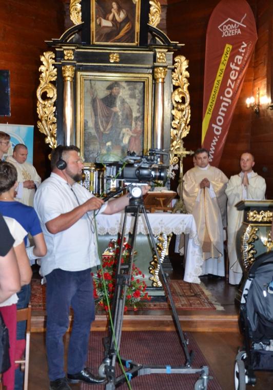 Jest tradycją w mikstackiej wspólnocie parafialnej, że w poniedziałki w Diecezjalnym Sanktuarium Świętego Rocha sprawowana jest msza święta, a po niej nabożeństwo do św. Rocha. Uczestniczy w nim wielu parafian. W poniedziałek, 24 czerwca było ich znacznie więcej. Nie wszyscy uczestniczyli w nim bezpośrednio, ale wielu włączyło się w nie duchowo, gdyż w tym dniu w ramach czwartych poniedziałków miesiąca przeprowadzona została na żywo transmisja radiowo- telewizyjna przez Radio Rodzina i TV Internetową Dom Józefa. Gościliśmy w tym dniu w sanktuarium Dyrektora Diecezjalnego Radia Rodzina i TV Internetowej Dom Józefa ks. Mateusza Puchałę, pochodzącego z naszej parafii. Wraz z ks. Mateuszem przybył ks. Szymon Rybak, który był w naszym sanktuarium po raz pierwszy i pewnie nie ostatni, bo tak jak wielu je nawiedzających i on nie oparł się jego urokowi. Mszy świętej przewodniczył kustosz miejsca ks. kan. Krzysztof Ordziniak, który polecał pracowników naszych mediów, prosił dla nich o światło Ducha Świętego. Wraz z ks. kustoszem przy ołtarzu stanęli ks. Mateusz, ks. Szymon i ks. wikariusz Marcin Walczak, którzy polecali Bożemu miłosierdzi zmarłych z naszej parafii.