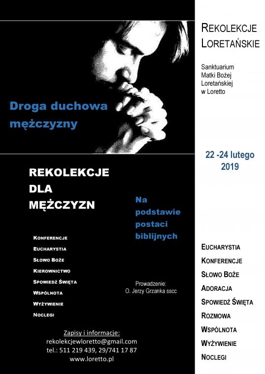 Zapisy i informacja: e-mail: rekolekcjewloretto@gmail.com tel.: 511 219 439, 29/741 17 87
