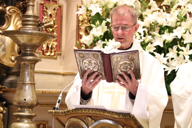 Księży i zgromadzonych pielgrzymów powitał ks. prał. Jacek Plota, kustosz Narodowego Sanktuarium św. Józefa. Duchowny przypomniał dzieje obrazu św. Józefa. Wskazał też na najważniejsze wydarzenia mające miejsce w kaliskiej bazylice. Wśród nich wymienił pielgrzymki dziękczynne kapłanów z Dachau cudownie ocalonych za przyczyną św. Józefa, wizytę papieża Jana Pawła II w Kaliszu i jego modlitwę przed cudownym obrazem oraz ogłoszenie przez papieża Franciszka Nadzwyczajnego Roku Świętego Józefa Kaliskiego.
