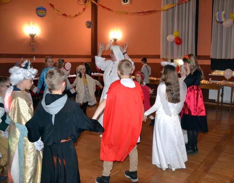 Nie zabrakło konkursów z nagrodami i słodkości. Zapewne uczestnicy Marszu i Balu Wszystkich Świętych na długo zapamiętają ten październikowy wieczór. Ponadto pokazali, że każdy może być Świętym, jeśli tylko chce … Wcielając się w postacie różnych Świętych pokazali jak różne są drogi prowadzące do świętości. Jeszcze jedna refleksja. W przededniu    uroczystości Wszystkich Świętych, gdy tak wiele osób przemieszczało się pospiesznie ulicami miasteczka robiąc jeszcze zakupy do ich uszu  popłynęło przesłanie: „możesz być świętym, jeśli chcesz”. Być może stało się one impulsem do postawienia pytania: czy naprawdę dążę do świętości?  Czy  chcę być świętym? Dla dzieci bal był zapewne okazją do poszukania takiego „ swojego” świętego, do zaprzyjaźnienia się z nim i do przeżycia wieczoru w duchu Bożej radości.