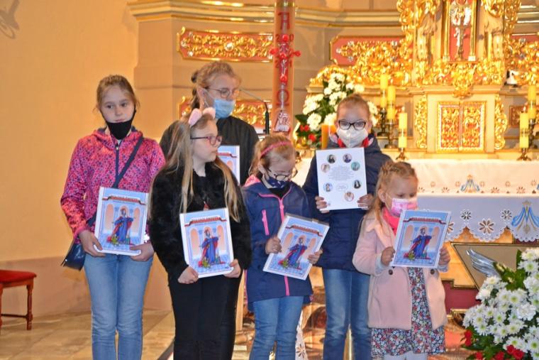 Za wykonanie poszczególnych zadań dzieciom przyznawane były punktu.  Zuzia Działak, Małgosia Gabryś, Nadia Gryglewska, Tymek Gryglewski, Bartek Majtas, Marysia Pyta, Staś Pyta, Eliza Szukalska, Kamil Szukalski, Michał Warzyński, Zosia Wróbel - to nasi liderzy, którzy wykonali wszystkie zadania.  W nagrodę otrzymali książeczki: dziewczynki „Polskie święte. Bohaterki dla dziewcząt”, zaś chłopcy „Polscy święci. Bohaterowie dla chłopców”. Dlaczego właśnie te, bo Rochowa Szkoła  pomaga w poznawaniu postaci świętego Rocha, tradycji odpustowych, ale także przekazuje wartości. Dzieci potrzebują wzorców osobowych, a te książeczki im je proponują.  Nieco mniej punktów zgromadzili: Marta Fabrowska, Sandra Fabrowska, Franek Kawałek. Oni otrzymali książeczki Perełka z aniołkiem. Wszyscy Autorzy prac otrzymali gromkie brawa.