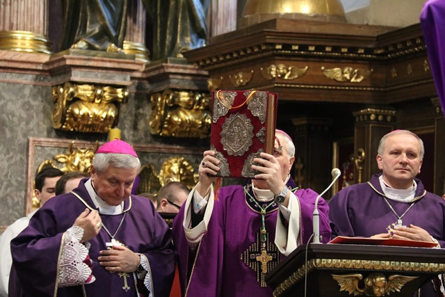 Dodał, że pełną odpowiedzią na słowo Boże jest czyn. - Starajmy się, by słyszane słowo Boże podczas liturgii słowa, rozważania męki Pańskiej, rekolekcji wielkopostnych, nabożeństw paschalnych, było wprowadzane w czyn. Byśmy byli, jak wasz Patron, ludźmi czynu – zachęcał hierarcha.