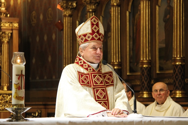 Witając biskupa i licznie zgromadzonych członków Akcji Katolickiej ks. prał. Adam Modliński wskazywał na krzyż, który w Wielki Piątek 2005 r. papież Jan Paweł II tulił do swojej piersi. – Od 22 października patronem Akcji Katolickiej jest św. Jan Paweł II. To łaska Boża, że właśnie dzisiaj, gdy na tej Mszy św. gromadzą się przedstawiciele Akcji Katolickiej z całej diecezji, w tym kościele jest krzyż, przy którym modlił się i do którego z synowską miłością i głęboką czcią tulił się Ojciec Święty Jan Paweł II osiem dni przed przejściem z tego świata do Domu Ojca – powiedział proboszcz katedry.