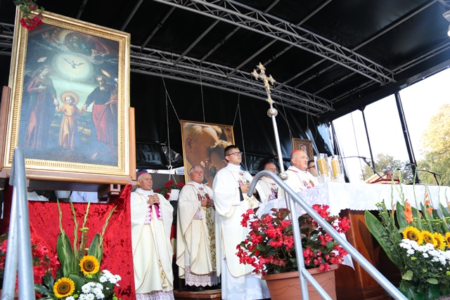 Mszy św. przewodniczył kard. Kazimierz Nycz, metropolita warszawski, w dykasteriach watykańskich: członek Kongregacji ds. Kultu Bożego i Dyscypliny Sakramentów, członek Kongregacji ds. Duchowieństwa, członek Papieskiej Rady ds. Kultury; w ramach Konferencji Episkopatu Polski członek Rady Stałej, przewodniczący Rady Ekonomicznej, członek Zespołu ds. Kontaktów z Konferencją Episkopatu Niemiec. Wraz z nim modlili się: biskup kaliski Edward Janiak, biskup pomocniczy diecezji kaliskiej Łukasz Buzun, bp senior Stanisław Napierała, bp senior Teofil Wilski, dyrektor Radia Maryja o. Tadeusz Rydzyk, ks. prałat Jacek Plota, kilkudziesięciu kapłanów oraz licznie zgromadzeni pielgrzymi z całej Polski.