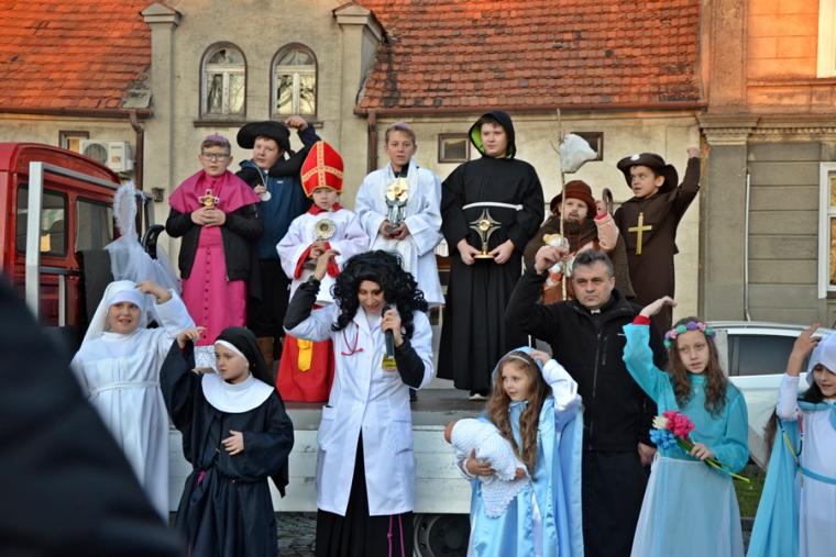 Przez cały październik od poniedziałku do piątku dzieci z mikstackiej parafii spotykały się na modlitwie różańcowej. Przyszły na nią także 29 października, ale przebrane za różnych świętych, bo po zakończonej modlitwie różańcowej odbył się ulicami Mikstatu Marsz Świętych. Jego trasa wiodła od kościoła farnego do Diecezjalnego Sanktuarium Świętego Rocha.