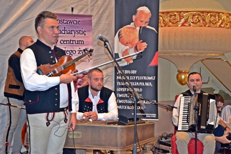 Po Mszy świętej odbył się koncert Zebrani w kościele usłyszeli wyjaśnienie znaczenia nazwy Kapeli. Było kilka słów o miłości św. Jana Pawła do gór. Potem dźwięki góralskiej muzyki wypełniły naszą świątynie. W doświadczeniu klimatów górskich i miejsc, które szczególnie ukochał Papież – Polak pomocna była prezentacja multimedialna.