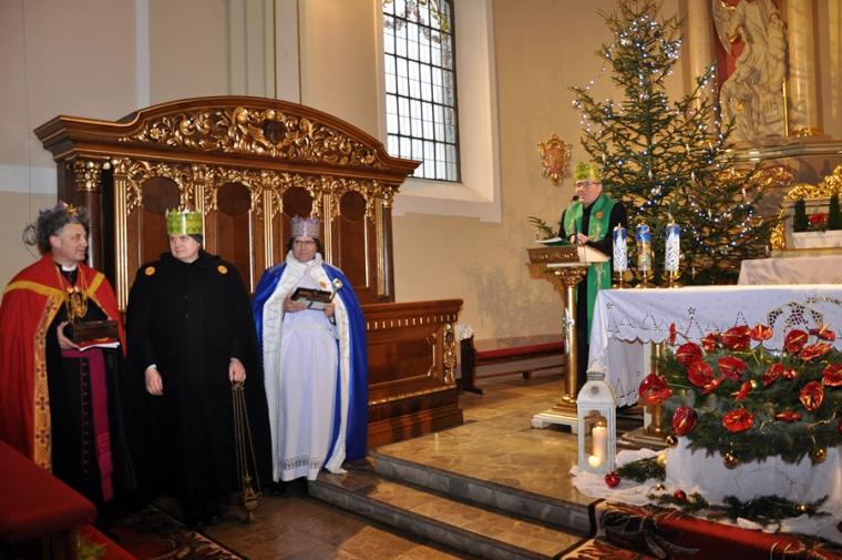Przywołajmy jeszcze postacie Trzech Królów. W postać króla europejskiego Kacpra, który reprezentował pokolenie dziadków wcielił się ks. kan. Adam Kosmała, proboszcz parafii rzymskokatolickiej pw. Narodzenia NMP w Kotłowie. Ks. kan. Przemysław Talaga proboszcz parafii pw. Świętego Wawrzyńca w Chynowej wcielił się w postać króla azjatyckiego Melchiora, reprezentującego pokolenie ojców, zaś ks. Aleksander Nawrocki, proboszcz parafii pw. Świętego Idziego w Przedborowie w postać króla afrykańskiego, przedstawiciela młodego pokolenia.