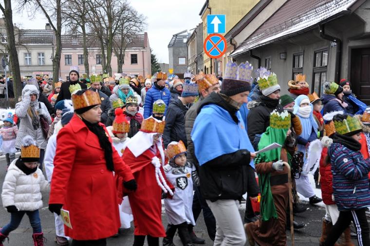 Po prezentacji Trzech Królów zebrani w mikstackim kościele obejrzeli scenę wyjścia brzemiennej Maryi Józefa, odmówiona została modlitwa Anioł Pański, a następnie Orszak wyruszył na ulice miasta. Na przedzie szli harcerze z orszakowym sztandarem i chorągwiami poszczególnych królestw, następnie anioły, Trzej Królowie, brzemienna Maryja z Józefem i pozostali uczestnicy Orszaku. Śpiewając kolędy, w atmosferze radości, wszyscy przeszli na mikstacki Rynek pod figurę Najświętszego Serca Jezusowego. Tu mieli okazję zobaczyć dwie scenki przygotowane przez uczniów szkoły podstawowej w Mikstacie. Pierwsza ukazywała dwór Heroda, w którym panuje przepych, pycha, zazdrość, w którym odmiana oblicza utożsamiana jest ze zmianami wyłącznie zewnętrznymi. Zmiany, na których koncentrują się mieszkańcy dworu Heroda nie dotyczą odmiany wewnętrznej, nie odnoszą się do przemiany serca człowieka. W drugiej scence uczestnicy orszaku mogli zobaczyć gospodę, której drzwi były zamknięte dla Chrystusa, ale która proponowała człowiekowi wiele pokus, sprawiających, że żyje on w nieładzie moralnym.