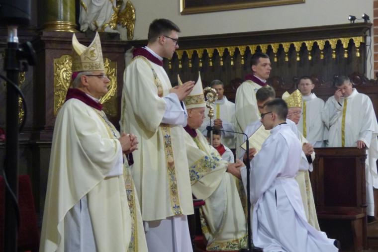 Kandydatów do święceń, przedstawił Biskupowi legnickiemu rektor Wyższego Seminarium Duchownego ks. dr Piotr Kot. Na diakonów wyświęceni zostali: Adam Bogdała z par. św. Wojciecha w Jeleniej Górze, Karol Diduszko z parafii w Pogorzeliskach, Artur Jaguszczak z par. Podwyższenia Krzyża Świętego w Legnicy oraz Łukasz Toporek z parafii w Ścięgnach.