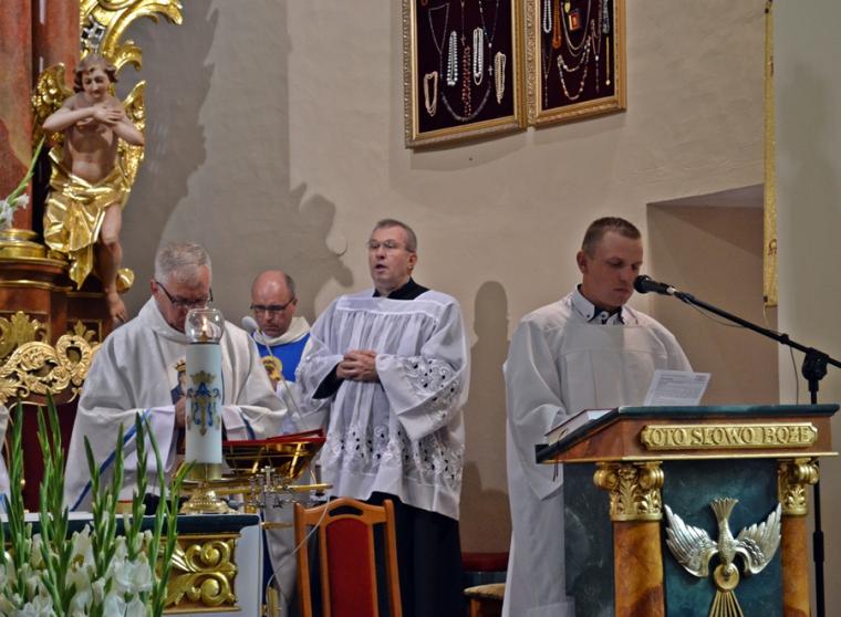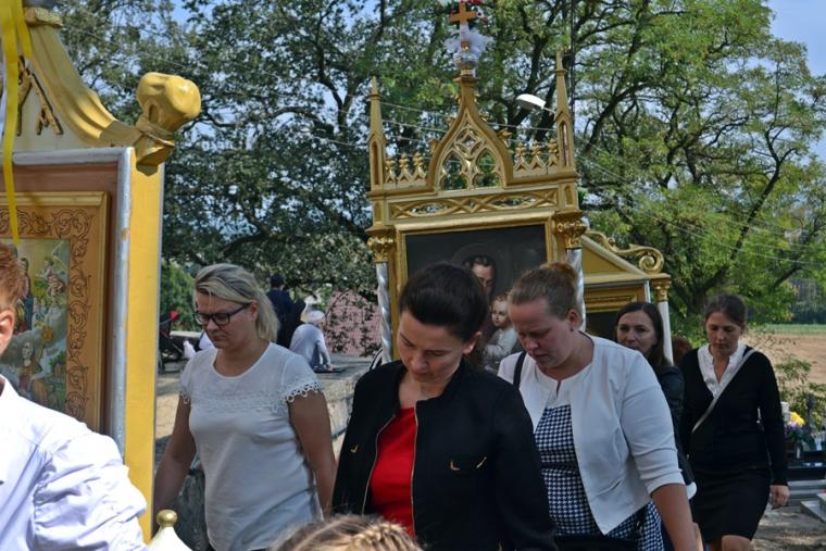 Kończąc kaznodzieja powiedział: „ Rozważając rodowód Jezusa Chrystusa nie zamartwiajmy się zbytnio, że jesteśmy, słabi, grzeszni. Jeśli przychodzimy do Chrystusa Pana i Jego Matki On z nami zrobi wielkie rzeczy. Bóg z tymi, którzy Go miłują współdziała we wszystkim. Amen”. Wiele ważnych słów wybrzmiało w homilii ks. kan. Jacka warto do nich powracać, uczynić je przedmiotem głębszej refleksji, a także rachunku sumienia. Po Mszy Świętej główny celebrans pobłogosławił ziarna zbóż. Następnie przy wystawionym Najświętszym Sakramencie odmówiona została Litania do Matki Bożej i procesja Eucharystyczna wyruszyła ścieżkami wiodącymi wśród grobów tych, którzy kiedyś oddawali cześć Matce Boskiej Kotłowskiej. Po końcowym błogosławieństwie odśpiewana została pieśń „ Boże coś Polskę”. Piękny jest ten odpustowy czas, dobrze spędzać go u stóp Matki Bożej Kotłowskiej, która z takim zatroskaniem spogląda na swe dzieci z ukoronowanego wizerunku.