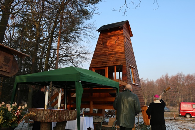 Biskup poświęcił miejsce kultu religijnego oraz pamięci ku czci leśników i myśliwych, a także posadził dąb.