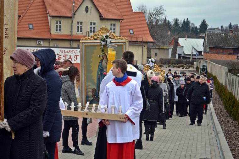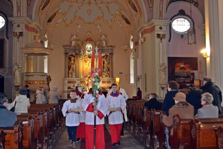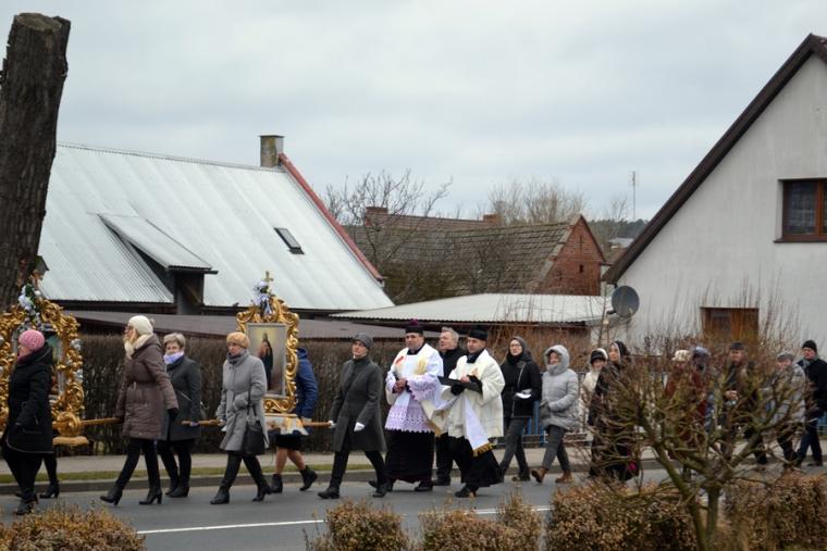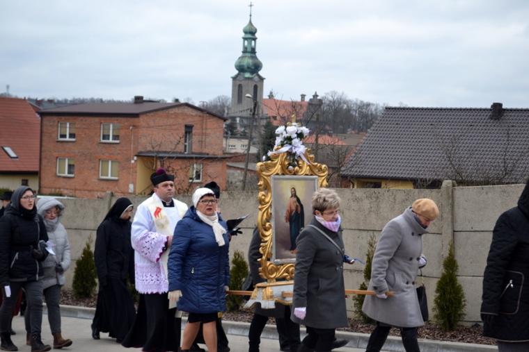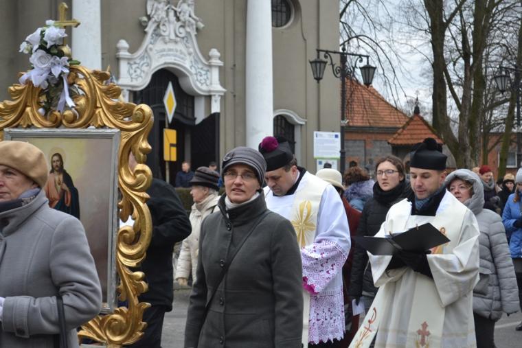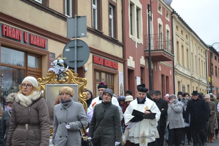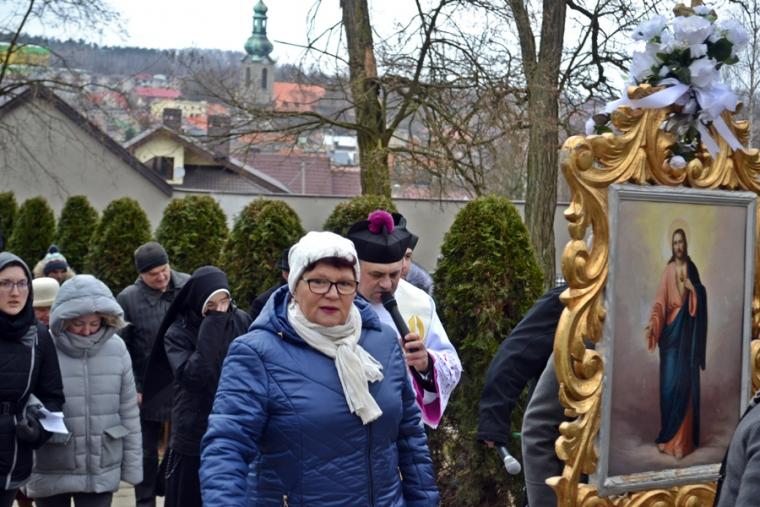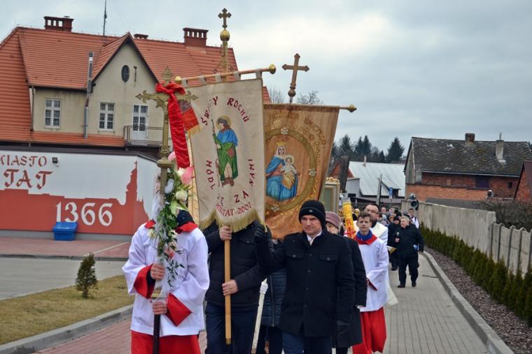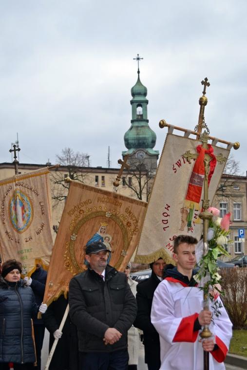 Po odprawieniu Nowenny do Miłosierdzia Bożego z krzyżem, paschałem, figurą Chrystusa zmartwychwstałego, feretronami i sztandarami, wyszliśmy na ulice naszego miasteczka. W naszą drogę do Emaus wyruszyliśmy z naszymi duszpasterzami: ks. kan. Krzysztofem Ordzinikiem, ks. Krzysztofem Lipińskim i ks. Mateuszem Puchałą. Ks. Krzysztof Lipiński niósł zapalony paschał, natomiast ks. kan. Krzysztof wraz z ks. Mateuszem prowadzili nabożeństwo Drogi Światła. Pierwsze spotkanie ze zmartwychwstałym Panem rozważaliśmy przed kościołem pw. Świętej Trójcy. Warto dodać, że wspólnota parafialna przygotowuje się do obchodów 100-lecia jego konsekracji. Ostatnie, przy Diecezjalnym Sanktuarium Świętego Rocha. Sanktuarium położone jest w centralnym punkcie cmentarza. Tu wielu uczestników procesji ma groby swoich bliskich. Dla nich przesłanie “Pan zmartwychwstał” nabiera tu szczególnego znaczenia. Daje nadzieję na spotkanie z tymi, którzy poprzedzili nas w pielgrzymce do Ojczyzny niebieskiej.