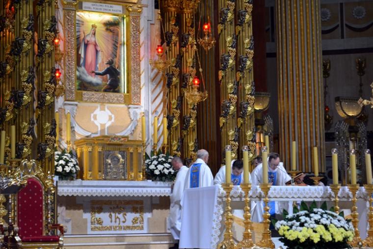 Jest już tradycją, w mikstackiej wspólnocie, że w okolicach dnia, w którym Kościół wspomina Najświętszą Maryję Pannę z Góry Karmel, popularnie nazywaną Matką Bożą Szkaplerzną pielgrzymujemy do Lichenia. W tym roku na pielgrzymi szlak wyruszyliśmy 17. lipca. Opiekunem duchowym liczącej prawie czterdzieści osób grupy był ks. proboszcz Krzysztof Ordziniak. Czas podróży do Lichenia wypełniony był śpiewem Godzinek i modlitwą różańcową. Spotkanie z licheńskim sanktuarium rozpoczęliśmy od nawiedzenia kościoła pw. Matki Bożej Dziesięciu Cnót Ewangelicznych. Stanowi on część kompleksu klasztoru Sióstr Anuncjatek. Tu ks. kan. Krzysztof przybliżył nam duchowość sióstr oraz zwrócił uwagę na ich wielobarwny strój. Regułę życia stanowi 10 Cnót Ewangelicznych Matki Bożej jako tej, która była: Najczystsza, Najroztropniejsza, Najpokorniejsza, Najwierniejsza, Najpobożniejsza, Najposłuszniejsza, Najuboższa, Najcierpliwsza, Najmiłosierniejsza, Najboleśniejsza. Kościół zachwyca prostym, pięknym, ale jednocześnie niezwykle wymownym wystrojem. Tabernakulum, krzyż, symbol Ducha Świętego i wypisanych 10 Cnót Ewangelicznych wskazuje na to, co w życiu człowieka powinno być najważniejsze. Potem na chwilę zatrzymaliśmy się w Kaplicy Sosny, miejscu gdzie Matka Boża objawiła się Mikołajowi Sikatce. Jak co roku podczas nawiedzenia licheńskiego sanktuarium w lesie grąblińskim odprawiliśmy drogę krzyżową. Tym razem jednak inaczej niż zazwyczaj. Dlaczego? Zawsze czas pomiędzy poszczególnymi stacjami wypełnialiśmy śpiewem, modlitwą różańcową. Tym razem ks. kan. Krzysztof zaproponował byśmy przeszli ją w milczeniu. Był to niezwykły czas refleksji, zadumy, której sprzyjała deszczowa pogoda. Pomiędzy poszczególnymi stacjami krzyż przejmowali uczestnicy pielgrzymi. Odczytywane przez ks. proboszcza rozważania zatytułowane „Droga trudnych pytań” i panująca po nich cisza pozwalały wsłuchać się w głos mówiącego do nas Boga. Pytania, które wybrzmiały przy poszczególnych stacjach, były rzeczywiście trudne i uświadamiały nam nasze braki, niedoskonałości w relacjach z bliźnimi, ale także skłaniały do refleksji nad przemijaniem. Pięknym duchowym przeżyciem była ta droga krzyżowa. O godzinie 10:00 uczestniczyliśmy w Bazylice Matki Bożej Bolesnej Królowej Polski we Mszy Świętej. Wśród kapłanów ją sprawujących był ks. kan. Krzysztof Ordziniak, który modlił się we wszystkich naszych intencjach. Wiele ważnych słów skierował kaznodzieja do pielgrzymów. Nawiązując do słów Ewangelii (Mt 11,20-24), zwrócił uwagę, że zapewne wiele osób dziwi się, jak ci, którzy słuchali słów Jezusa, widzieli cuda, które czynił mogło nie uwierzyć i nie nawrócić się. Zaakcentował jednak, że cuda dzieją się i dziś i są zaproszeniem do większej ufności. Celebrans podkreślił, że Eucharystia jest ucztą, na którą zostaliśmy zaproszeni przez Jezusa i Jego Matkę. Kaznodzieja zwrócił uwagę, że nasza obecność jest wyrazem wiary w Boga żywego, a jednocześnie zaproszeniem do tego, by każdego dnia podejmować trud nawracania. W dalszej części homilii kapłan wskazał, że Maryja także została zaproszona do wiary żywej. Jak podkreślił, to dzięki wierze Maryi Jezus dokonał pierwszego cudu. Maryja będąc mistrzynią życia duchowego jest dla nas wzorem wiary ufnej i żywej. Kapłan przekonywał, że jest Ona tą, która dostrzega ludzkie braki, zakłopotanie, potrzeby. W związku z tym zachęcał wiernych, by pozostawili u Jej stóp wszystkie bolączki i trudne sprawy. Apelował, by przylgnąć do serca Matki, która pomoże przetrwać nam trudne chwile. Kończąc homilię celebrans podkreślił potrzebę ciągłej modlitwy o łaskę żywej wiary. Po Mszy św. w bazylice można było wysłuchać koncertu organowego.Wielu udało się do kościoła św. Doroty, na Golgotę. Przede wszystkim był jednak czas na indywidualną modlitwę i refleksję. Wybierając się do tronu Matki Bożej Licheńskiej chcieliśmy jej przecież przedstawić prośby, podziękowania, podzielić się z Nią naszymi radościami i troskami. Po Mszy św. był właśnie ten czas, czas na osobiste spotkanie z Matką i Jej Synem.