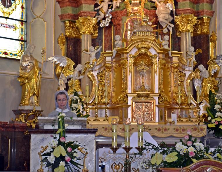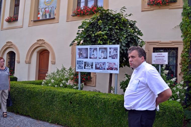 Po mszy Świętej ojciec franciszkanin przedstawił nam historię bazyliki i kultu św. Anny Samotrzeciej. Zwrócił naszą uwagę na malowidła na suficie przedstawiające sceny z życia św. Anny. Zwiedziliśmy także muzeum klasztorne gdzie zobaczyliśmy m.in. sukienki, które nakładane są na figurę św. Anny Samotrzeciej. Ich kolor, jak wyjaśnił nam ojciec uzależniony jest od okresu roku liturgicznego. Obejrzeliśmy makietę przedstawiającą sanktuarium św. Anny i dróżki kalwaryjskie. Wracając z muzeum zatrzymaliśmy się jeszcze na chwilę modlitwy w bazylice, gdzie odmówiliśmy Litanię do Świętej Anny. Czas szybko płynie o trzeba było wracać do domu. Powrót nie kończy jednak czasu pielgrzymowanie, ale jeden z jego etapów. Pielgrzymką jest całe nasze życie. Jej celem - domu Ojca. Mamy nadzieję, że gdy nadejdzie jej kres spotkamy się z Jezusem, Maryją, świętymi Joachimem i Anną, św. Jackiem, św. Rochem…
