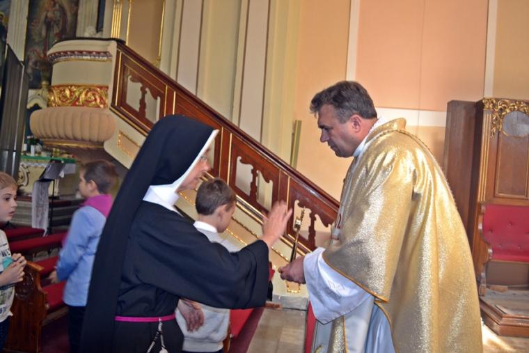 Siostry Franciszkanki Rodziny Maryi od 1921 roku posługują w naszej mikstackiej parafii. Starania o to, by w Mikstacie powstał Dom Zakonny podjął budowniczy kościoła farnego ks. Franciszek Ruszczyński. Na przestrzeni lat posługiwało w naszej wspólnocie wiele sióstr. Podejmowały posługę zgodnie z charyzmatem i zadaniami powierzonym im przez Ojca Założyciele. Starsze pokolenie Mikstaczan z wielkim wzruszeniem opowiada do dziś o ochronce prowadzonej przez Siostry. Ponadto Siostry opiekowały się chorymi w domach, katechizowały. Obecnie w Domu Zakonnym Sióstr Franciszkanek Rodziny Maryi w Mikstacie na ul. Kaliskiej mieszkają cztery Siostry: s. Sylwia Kanak, s. Helena Południuk, s. Aneta Pielacha i s. Bogusława Gajowska. Siostra Sylwia pełni funkcję przełożonej. To s. Sylwia zajmuje się dekorowaniem kościoła, posługuje jako zakrystianka. Wielką miłością i troską obdarza św. Rocha. Siostra Helena zajmuje się kuchnią, świetnie piecze i gotuje. Uczestniczy w prawie wszystkich wyjazdach pielgrzymkowych organizowanych w parafii i zawsze obdarza wszystkich dobrym słowem i promiennym uśmiechem. Z kolei s. Aneta działa w reaktywowanej Świetlicy Środowiskowej prowadzonej przez Siostry. Obdarzona pięknym głosem i umiejętnością gry na gitarze śpiewa w parafialnej scholi, ale także pisze ikony. Siostra Bogusława jest wśród nas od niedawna, uczy w szkole religii. Będzie m.in. przygotowywała dzieci do pierwszego pełnego uczestnictwa w Eucharystii. Każda z Sióstr ma swoje obowiązki, zadania. Siostry są jednak wielkim skarbem przede wszystkim dlatego, że obejmują modlitwą dzieła podejmowane w parafii. Piękna i niezwykle podniosła uroczystość, w której uczczono założyciela Zgromadzenia Sióstr Franciszkanek Rodziny Maryi dobiegła końca. Czas świętowania dobiega końca, a znów w poniedziałek w świetlicy środowiskowej pojawiły się dzieci, siostry podejmą katechezę i posługę w kościele i tak jak nakazał im ich Tato- Święty Zygmunt Szczęsny uczynią to wszystko w duchu pokory i prostoty. A dla wiernych niech ten dzień będzie zachętą do pochylenia się nad pozostawionymi dziełami Zygmunta Szczęsnego Felińskiego. Pozwolą nam one lepiej poznać tę wielką postać. Być może pomoże nam to dostrzec i odkryć ważną prawdę, że także w dzisiejszych czasach Świętych można naśladować, można żyć wartościami, które dla nich były istotne i doprowadziły ich do chwały nieba...