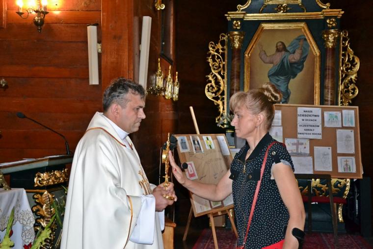Na początku kaznodzieja przytoczył słowa błogosławieństwa: Błogosławieni ci, którzy słuchają słowa Bożego i go przestrzegają. Zaznaczył  że połowa błogosławieństwa na nas spoczywa, bo słuchamy słowa Bożego, co będzie z drugą zależy od tego co z tym słowem zrobimy. Tematem przedostatniej konferencji było przebaczenia. Kaznodzieja podkreślił, że jest to bardzo ważny element miłości bliźniego. Podkreślił, że św. Roch doświadczył dużo odrzucenia, niesłusznego oskarżenia mimo, iż wiele ludziom pomagał.. Ksiądz rekolekcjonista zaakcentował, że nie skarżył się, nie mści,  ale prosił Boga, by był z nim w tych trudnych chwilach. Kontynuując ksiądz Sebastian przywołał słowa św. Pawła: „Nie daj się zwyciężać złu, ale zło dobrem zwyciężaj”  i podzielił się z nami refleksją, że długo nie mógł zrozumieć tych słów. Znalazł wyjaśnienie  tych słów na adoracji. Wskazują one, że nie możemy dopuścić do tego,  by zło przemieniło nasze myślenie, nie powinniśmy ulegać złu, które jest w nas wymierzone. Wyjaśniając znaczenie słów o nadstawiania drugiego policzka wskazał, że czasami trzeba zamilknąć, nawet jeśli narażamy się na stratę np. dobrego imienia, czy dóbr materialnych. W dalszej części konferencji kaznodzieja przywołał postać św. Maksymiliana. Wspomniał, że   z celi śmierci zawsze dochodziły przekleństwa, żale do Pana Boga. Wtedy, gdy przebywał w niej Maksymilian jego współtowarzysze modlili się, śpiewali pieśni  religijne. „Przebaczenie wpisuje się w to. Umieć przebaczyć z serca, chcieć przebaczyć, bo to z przebaczeniem jest tak, że ono ma jakby dwa kroki. Pierwsze to ja muszę chcieć  przebaczyć”. Jednocześnie ksiądz rekolekcjonista wyjaśnił, że są czasami tak trudne sytuacje, zranienia, że nie potrafimy przebaczyć. Ważne jest wtedy czy chcemy to uczynić. Jeśli nie potrafimy przebaczyć, ale chcemy to drugi krok pomoże nam  zrobić Pan Bóg. Bóg potrafi uzdrowić serce człowieka, e jest zdolne do wybaczenia – dodał.  ksiądz Sebastian. Nawiązując do postaci naszego patrona ksiądz Sebastian, że realizował on zasadę krzywdy cierpliwie znosić. Trzecim świadkiem, który nie dał się zwyciężyć złu o którym opowiedział kaznodzieja był Tim Guénard, który został bardzo poraniony przez swego ojca. Na jego drodze stanął  człowiek, który pomógł mu odnaleźć Boga i doprowadził do tego, że Tim wybaczył ojcu. Kapłan zachęcał, byśmy przebaczali, bo dopóki nie przebaczymy nie zaznamy. Ksiądz rekolekcjonista przywołał słowa z modlitwy Pańskiej „módl się do Boga  Ojcze, jednocześnie uczy nas w modlitwie odpuść nam tak jak my odpuszczamy”. Czy masz serce wolne i czy nie nosisz do nikogo żalu- pytał. Gdy nie chcemy przebaczyć mamy zamknięte serca, zamykamy się na łaskę Bożą, na Boże miłosierdzie. Kończę rozważenia ksiądz Sebastian przywołał słowa z nowenny: „Przez Twoje zasługi wyjednaj nam u tronu Bożego łaskę, byśmy wstrzymali się od wszelkiej mściwości, gdy spotka nas zniesławienie i wyśmianie”  i dodał „ Kiedy te słowa będą padały, czy nie jest tak w moim życiu, że komuś czegoś jeszcze  nie wybaczyłem (…) Prośmy wtedy żebyśmy mieli serce wolne, żebyśmy byli wolni od wszelkiej złości, od wszelkiej nienawiści,  od wszelkiego żalu”.