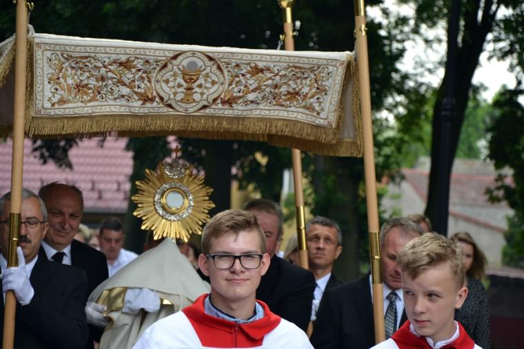 W procesji z darami dzieci przyniosły chleb wodę i wino oraz hostie. Po zakończeniu Mszy Świętej został wystawiony Najświętszy Sakrament i odmówiona Litania do Trójcy Przenajświętszej, a następnie wyruszyliśmy z procesją wokoło kościoła. Po błogosławieństwie udzielonym Najświętszym Sakramentem licznie zebranym w mikstackim wieczerniku wiernym wybrzmiała pieśń „Boże coś Polskę…”.