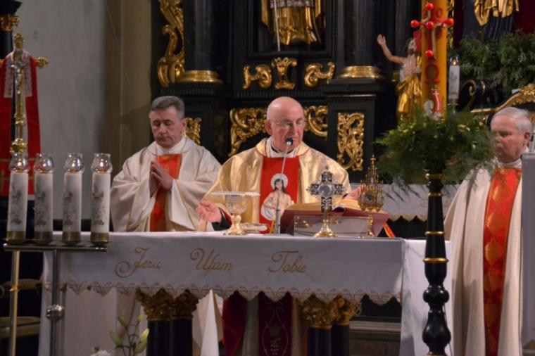 Jesteśmy szczęśliwi tu w Wieruszowie, że posiadamy ceną relikwię obraz Jezusa zranionego – Chrystusa Pięciorańskiego. Jesteśmy szczęśliwi, że pierwszy biskup diecezjalny Stanisław Napierała podniósł ten kościół – nasz kościół wieruszowski - do rangi Diecezjalnego Sanktuarium Miłosierdzia Bożego.